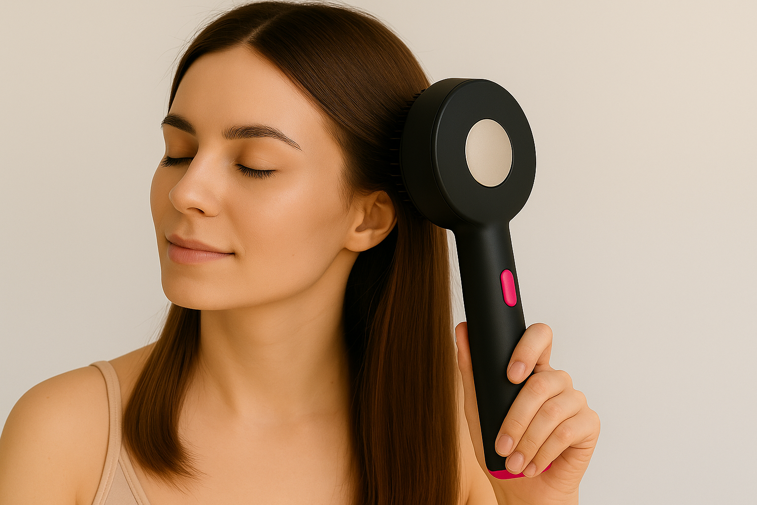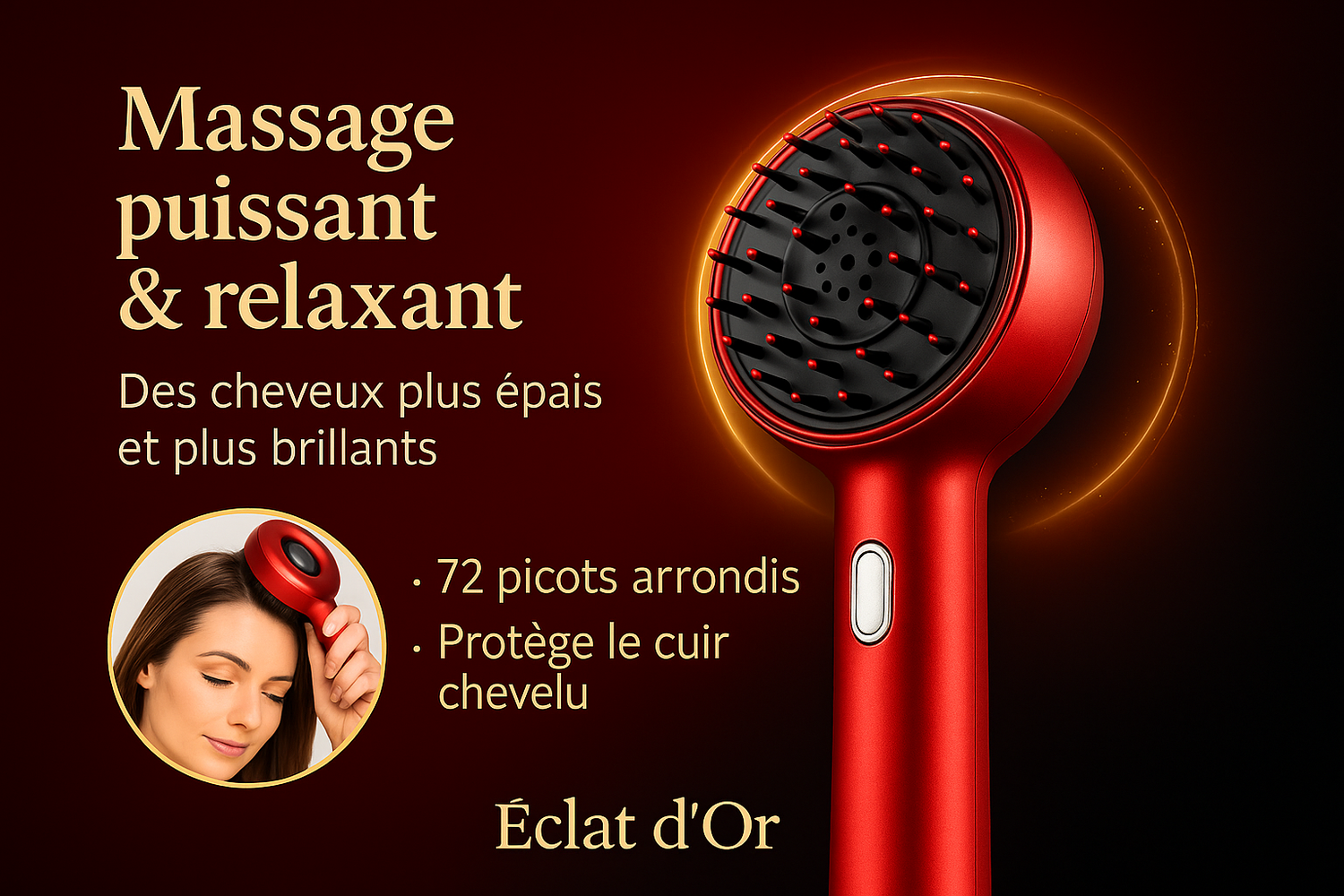 Éclat d’Or – Brosse Massante Électrique Cheveux & Cuir Chevelu | Stimule la Circulation, Favorise la Pousse & Nourrit Vos Cheveux